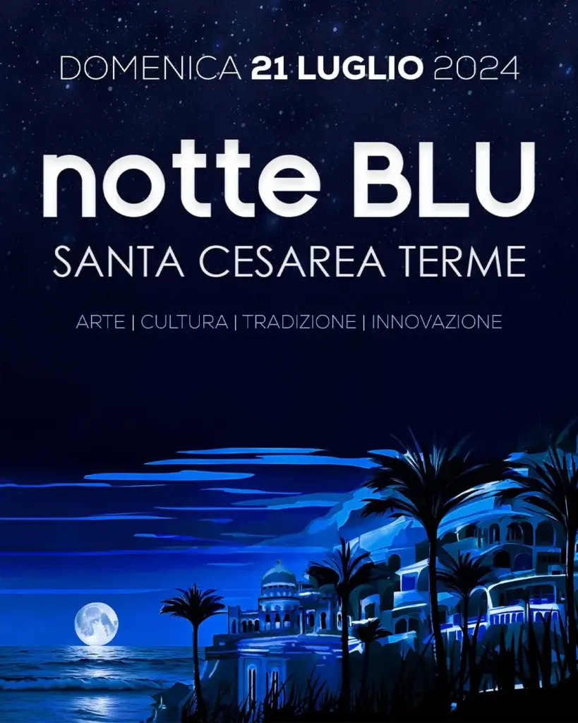 Domenica 21 luglio ’24 torna il consueto e atteso appuntamento con la Notte Blu a Santa Cesarea Terme, una data speciale in quanto per le vie della città e sul lungomare si condensano iniziative ed eventi unici, pronti a svelarsi in una lunga notte di suggestioni.