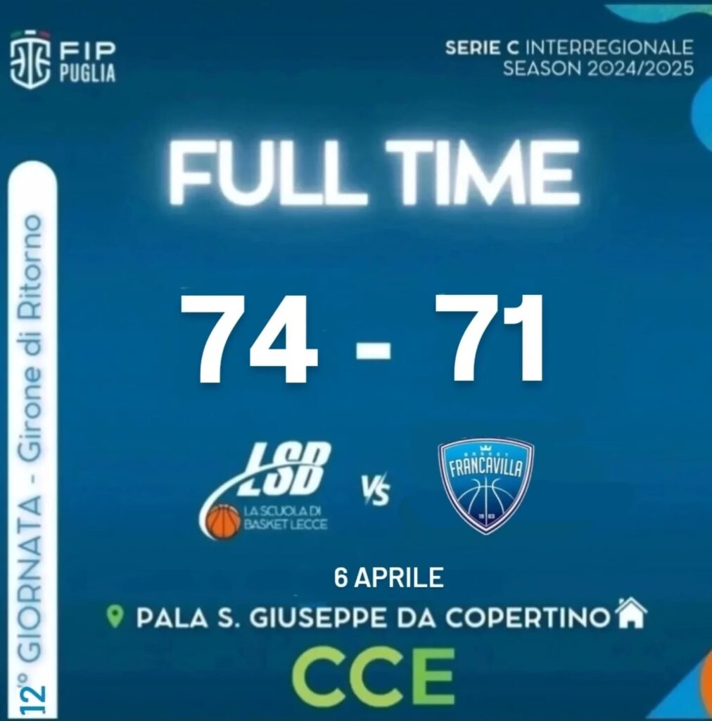 Oltre le defezioni e le avversità di un campionato sempre più combattuto, c’è il cuore di una squadra che non molla mai. La Cce Lsb Lecce vince contro Francavilla tra le mura amiche del “San Giuseppe da Copertino” e sale a quota 32 punti nella classifica del campionato maschile interregionale di serie C. Nonostante le numerose assenze, i biancazzurri guidati da coach Daniele Michelutti hanno avuto ragione di Francavilla col punteggio 74-71, in occasione della gara valida per la 12esima giornata di ritorno della regular season.