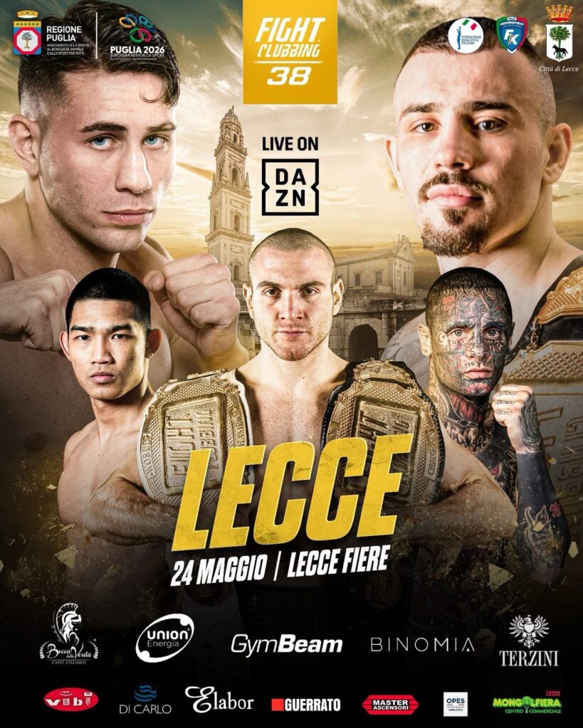 È partito il conto alla rovescia alla 38esima edizione del “Fight Clubbing World Championship“, in programma il 24 maggio al LecceFiere di piazza Palio in diretta su Dazn a partire dalle 20.30. La manifestazione fondata e organizzata dal leccese Andrea Sagi metterà in palio due titoli del mondo contornati da 16 match professionistici k-1, pugilato e muay thai. La manifestazione di spessore mondiale è stata presentata martedì scorso a Lecce presso la sala polifunzionale “Open Space” di Palazzo Carafa. Per l’evento sportivo si prevede il tutto esaurito che appassionerà gli amanti degli sport da ring.